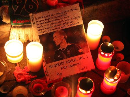 Robert Enke... O artık öldü. Sevdiğim sınırsı sayılı kalecilerden biriydi. Takipde ediyordum hatta 2003 de 2 yaşındaki kızı ölmüştü. Maddi sorunlar yüzündendende sıkıntı içerisindeymiş kendinsi. Kızının ölümünüde atlatamamış. Karısıda psikolij tedavi görüyormuş.